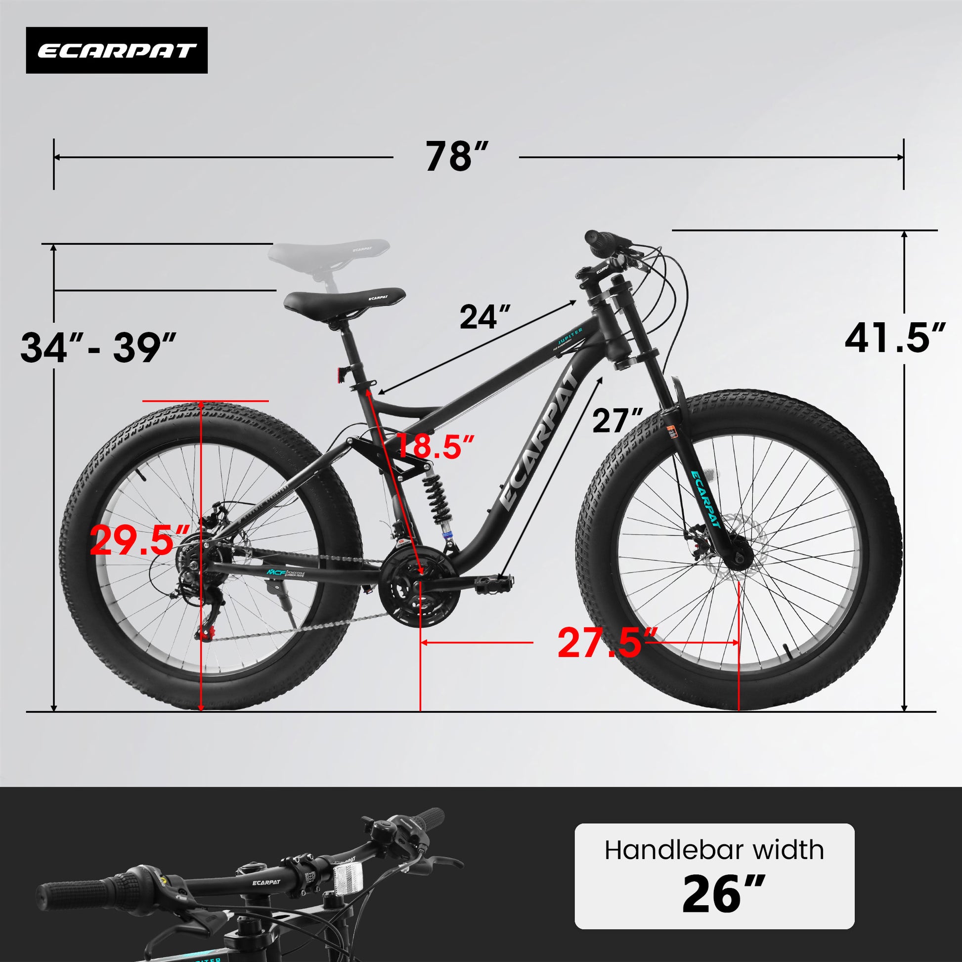 A26309 26 Inch Mountain Bike,Full-Suspension 21 Speeds Drivetrain With Disc-Brake Bicycle, Fat Tire Bike For Men
